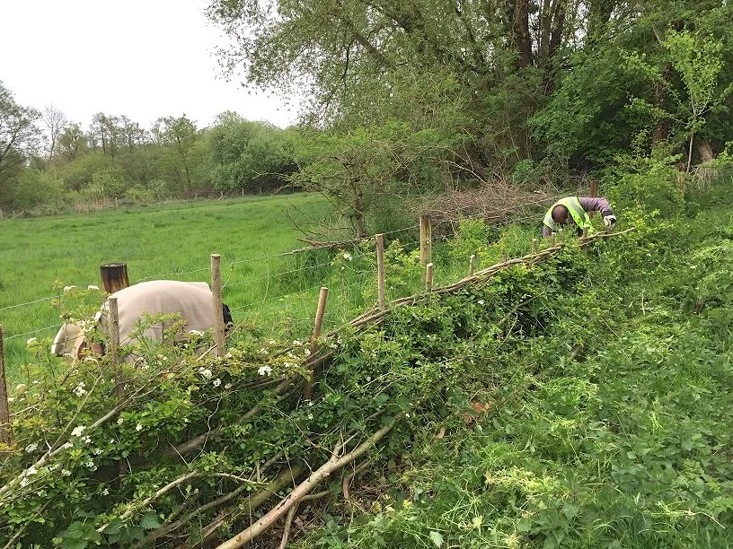 Over the winter our monthly work parties spent time layering hedges around some of the lake’s cattle meadows. Hedge layering is is an art that is both ancient and environmentally friendly, not least because the dense hedges it creates provide a corridor / habitat for wildlife (small mammals, birds and butterflies).